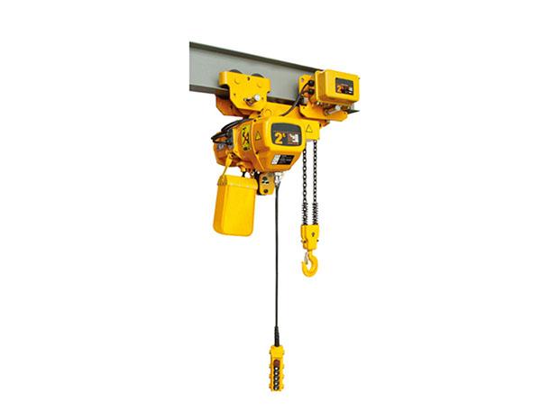 低凈空環(huán)鏈電動(dòng)葫蘆適用于廠房高度較低又對(duì)提升高度有嚴(yán)格要求的工作場(chǎng)所使用,尤其適用于臨時(shí)搭建的廠房?jī)?nèi)或者在其內(nèi)需要擴(kuò)大有效起升空間的場(chǎng)所。低凈空環(huán)鏈電動(dòng)葫蘆由2個(gè)跑車(chē)以及一個(gè)電動(dòng)主機(jī)組合而成。