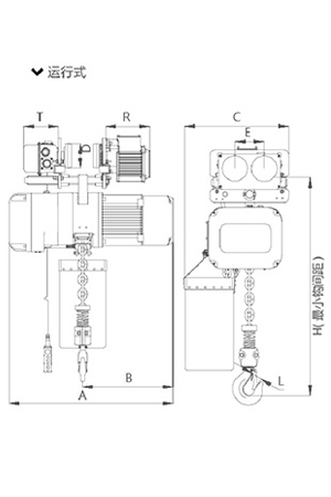 | 運(yùn)行式環(huán)鏈電動(dòng)葫蘆0.25T-5T尺寸參數(shù) | |||||||||