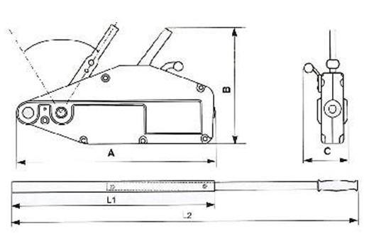 額定起重量(KG) 額定收拉力N 額定前進(jìn)行程 鋼絲繩直徑(mm) 鋼絲繩安全系數(shù) 整機(jī)安全系數(shù) 最大載荷(KG) 整機(jī)重量(KG) 整機(jī)尺寸 L1(mm) L2(mm)