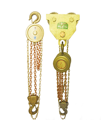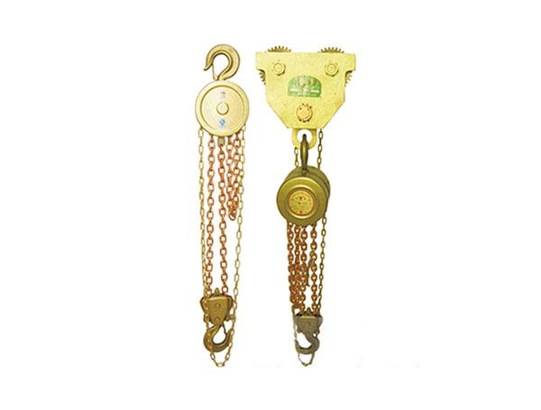 防爆手拉葫蘆以鋁青銅、鈹青銅作為毛坯,防爆手拉葫蘆外殼采用H62銅合金材料,其轉動齒輪經(jīng)過高溫熱處理從而達到齒輪據(jù)有很高的耐磨性。在作業(yè)中產品相互摩擦撞擊不會產生機械火花,在易燃易爆場所不引爆氣體,有效防止火災事故。